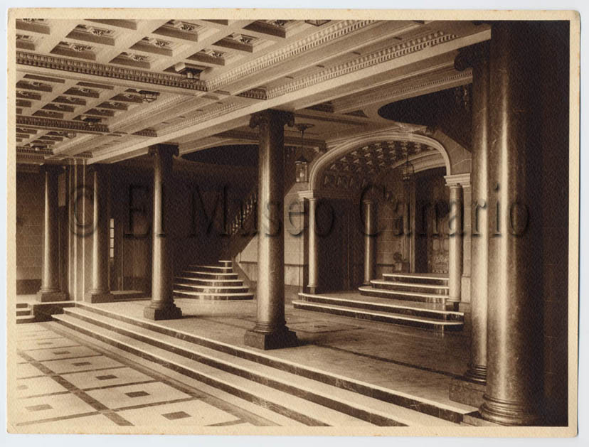 Descripción: Vista parcial del vestíbulo de entrada del teatro Pérez Galdós tras su reconstrucción después del incendio de 1918.