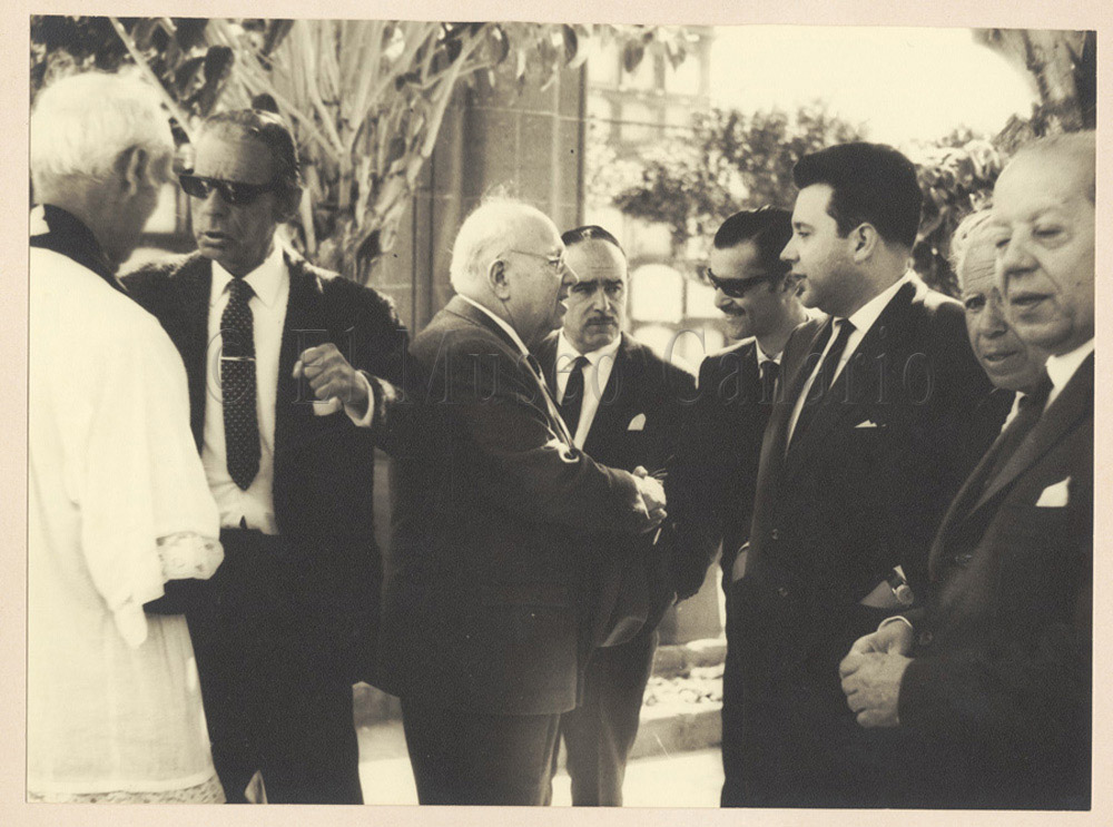 Alcance y contenido: Homenaje póstumo a Domingo Doreste Rodríguez "fray Lesco" celebrado en el cementerio de Las Palmas de Gran Canaria en 1966. Víctor Doreste Grande dialoga con el sacerdote presente en el acto. Al fondo pueden identificarse a Luis Doreste Silva, Manuel Doreste Suárez y Juan Sosa Ayala, entre otros.Documento asociado