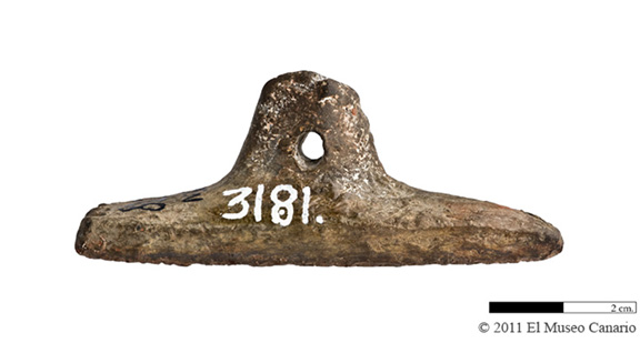 Bibliografía: PÉREZ DE BARRADAS, J., "Catálogo de la colección de cerámica y objetos arqueológicos (Salas Grau y Navarro) de El Museo Canario". El Museo Canario, anexo nº 1 (Las Palmas de Gran Canaria, 1944), pp. 1-72, nº 822.