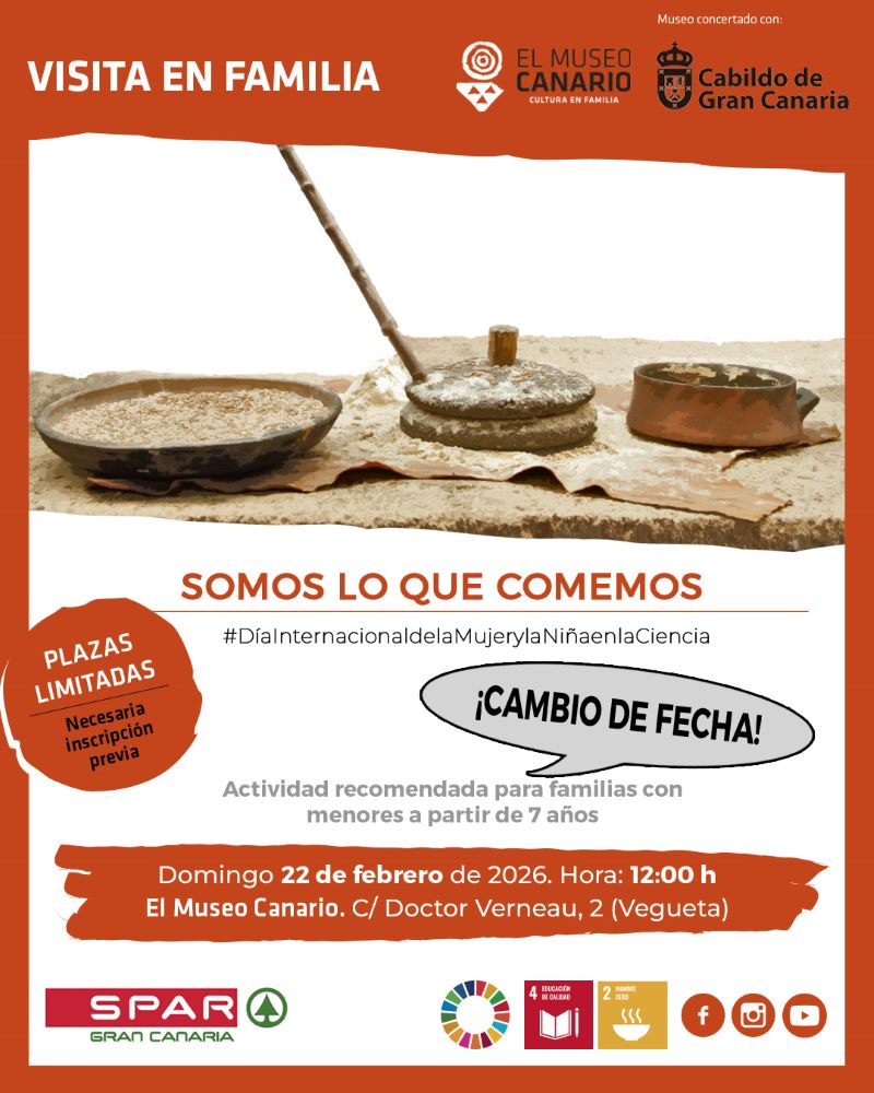 Dentro de su programa de «Visitas en Familia», El Museo Canario propone para el domingo 22 de febrero, a las 12:00 h, el taller «Somos lo que comemos».