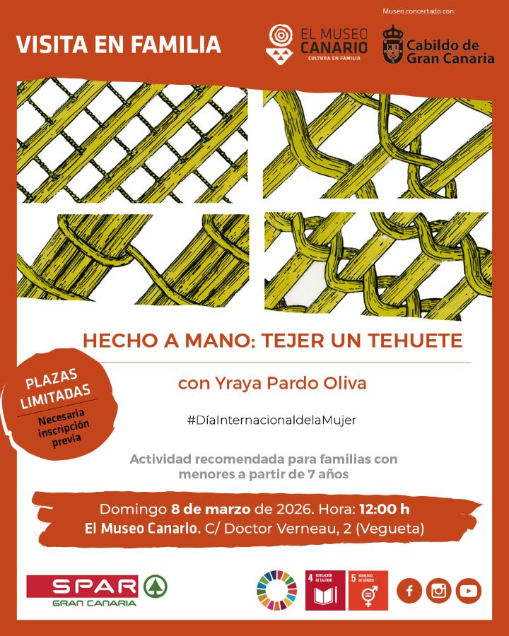 «Hecho a mano: tejer un tehuete» es el título de esta nueva convocatoria, que tiene como objetivos reconocer el papel de la mujer en la sociedad aborigen de Gran Canaria y destacar el valor de los trabajos que desempeñaba.